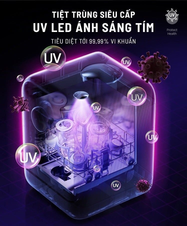 Tự động tiệt trùng UV, khuếch tán ánh sáng UV khắp khoang máy sau chu trình rửa