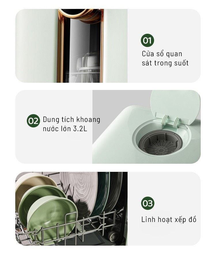 Khoang máy cực lớn, xếp được đa dạng các loại bình sữa, dụng cụ, bát đĩa ăn dặm