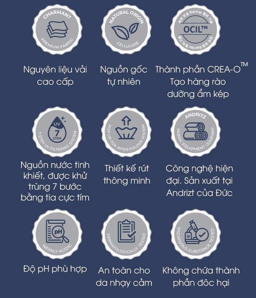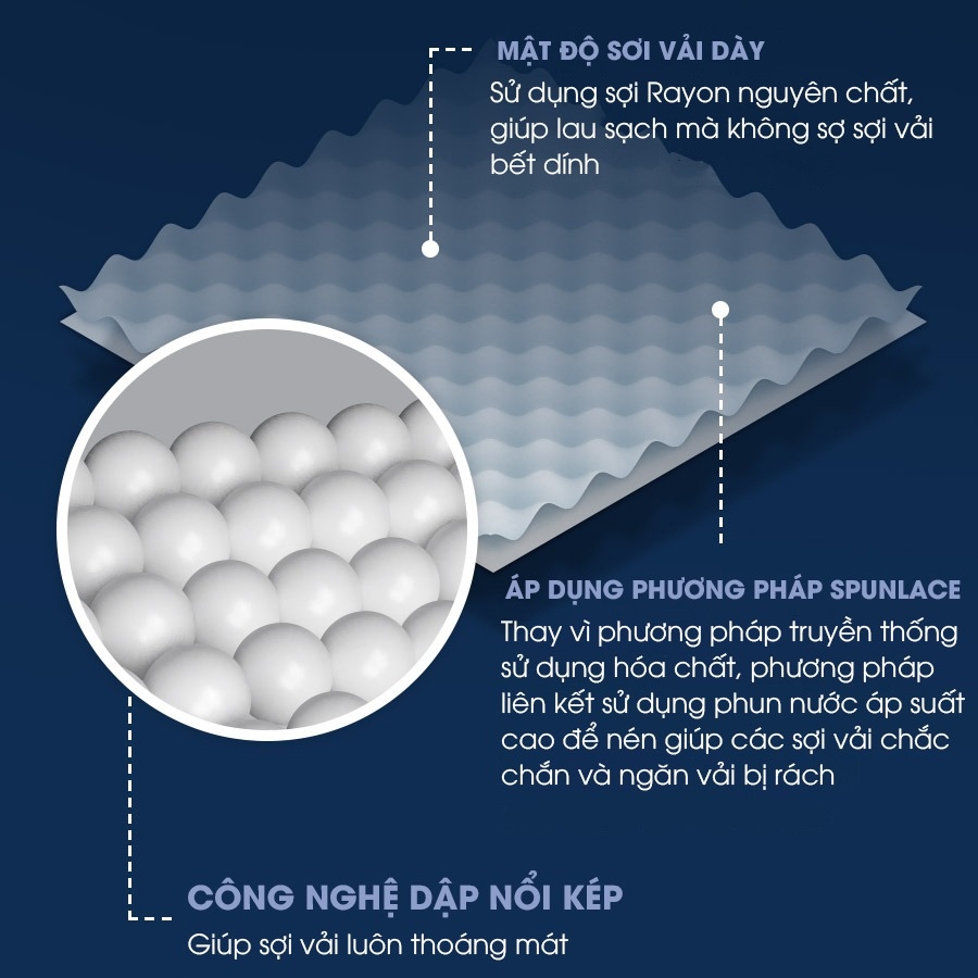 – Cấu trúc dập nổi kép thoáng mát, giữ ẩm tối ưu.