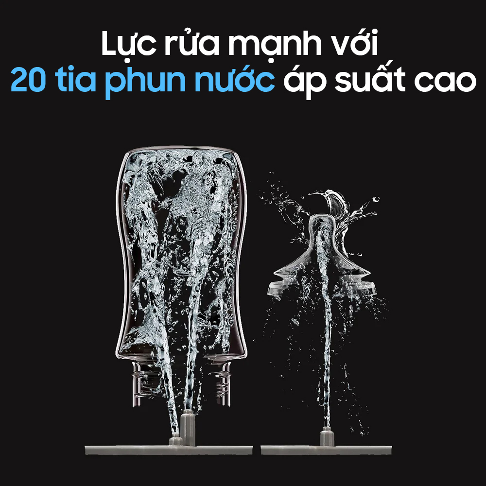 20 tia nước được phun với áp suất cao giúp làm sạch cặn sữa cứng đầu trên mọi bề mặt và những khe nhỏ của bình sữa, núm ti hay các bộ phận của máy hút sữa.