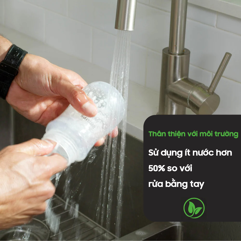 Tiết kiệm được tới 50% lượng nước so với rửa bình bằng tay.