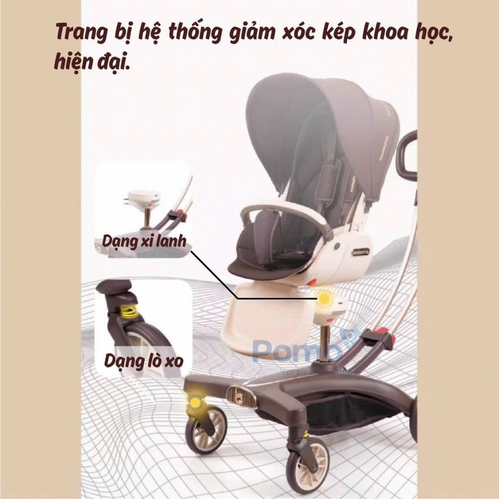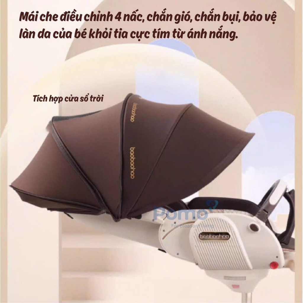 Mái che rộng rãi thiết kế 4 nấc giúp chống nắng, gió và bụi bẩn, bảo vệ toàn diện cho bé