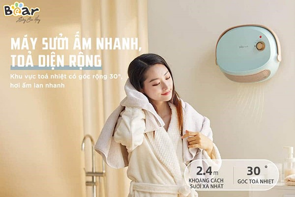 – Gió nóng (1900W): thích hợp nhất là dùng vào những ngày rét đậm rét hại hoặc khi bạn muốn có một không gian ấm cúng khi đi tắm. Quạt sưởi của Máy sưởi Bear DNQ-A19B1 toả nhiệt góc rộng 30°, giúp nhiệt độ sưởi trải dài toàn không gian, làm ấm nhanh chóng chỉ trong khoảng 3 giây. Với tốc độ làm ấm nhanh và góc toả nhiệt lớn, máy sưởi Bear DNQ-A19B1 phù hợp với các loại phòng có diện tích rơi vào khoảng 15m2 như phòng ngủ, phòng khách, phòng tắm…