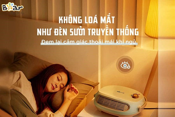 Đèn của máy sưởi Bear được thiết kế không lóa mắt như đèn sưởi truyền thống giúp cho việc ngủ của bạn trở nên dễ dàng hơn so với dùng đèn sưởi truyền thống.