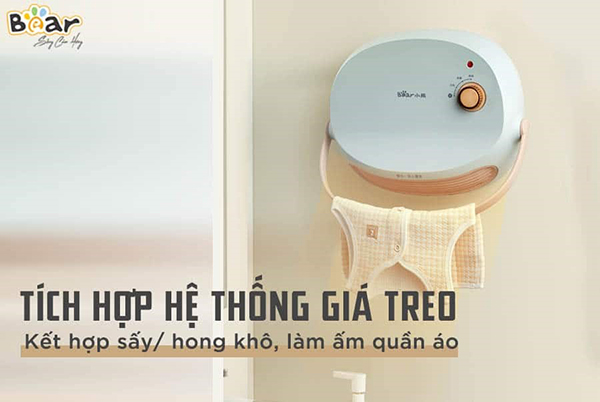 Hơn thế nữa, máy sưởi Bear còn tích hợp thêm giá treo để sấy, hong khô, làm ấm quần áo ngay dưới máy sưởi vô cùng tiện lợi.