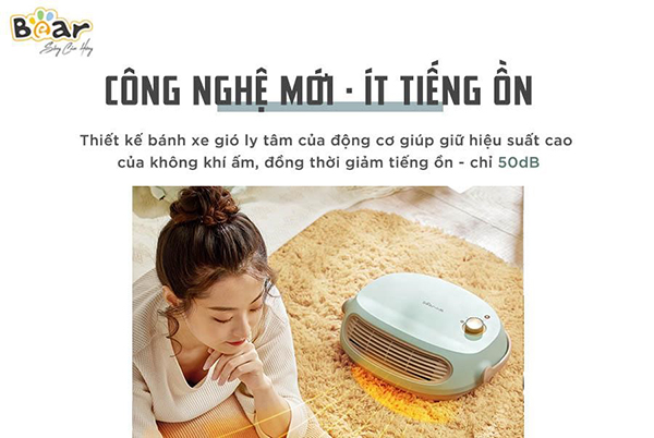 Máy sưởi Bear DNQ-A19B1 còn được ứng dụng công nghệ ít tiếng ồn với thiết kế bánh xe gió ly tâm của động cơ. Điều này giúp giữ được hiệu suất cao của luồng khí ấm đồng thời giảm tiếng ồn đến mức tối thiểu, chỉ tương đương với 50dB.