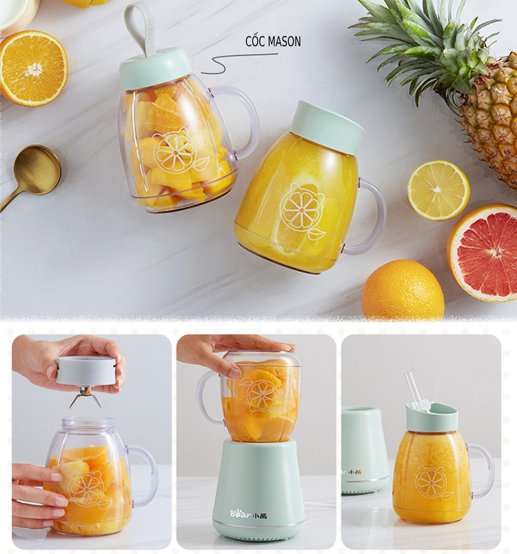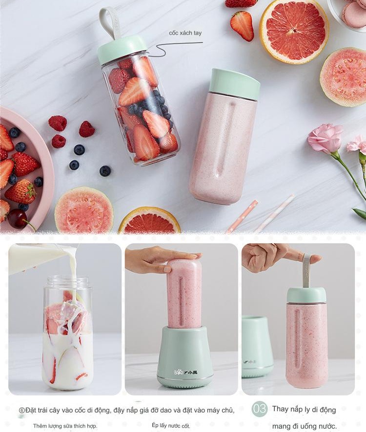 - Bộ sản phẩm đầy đủ bao gồm: 01 thân máy, 01 bình đựng 400ml, 01 bình đựng 600ml, 01 ống hút tái sử dụng