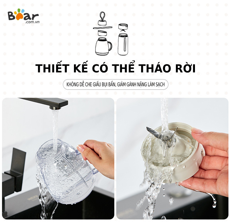 - Các phụ kiện có thể tháo rời, dễ dàng vệ sinh - Mút silicon dưới đế cối, chống trượt