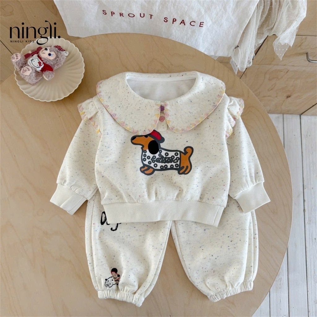 BK - Bộ nỉ kem cổ sen in cún (90-140)