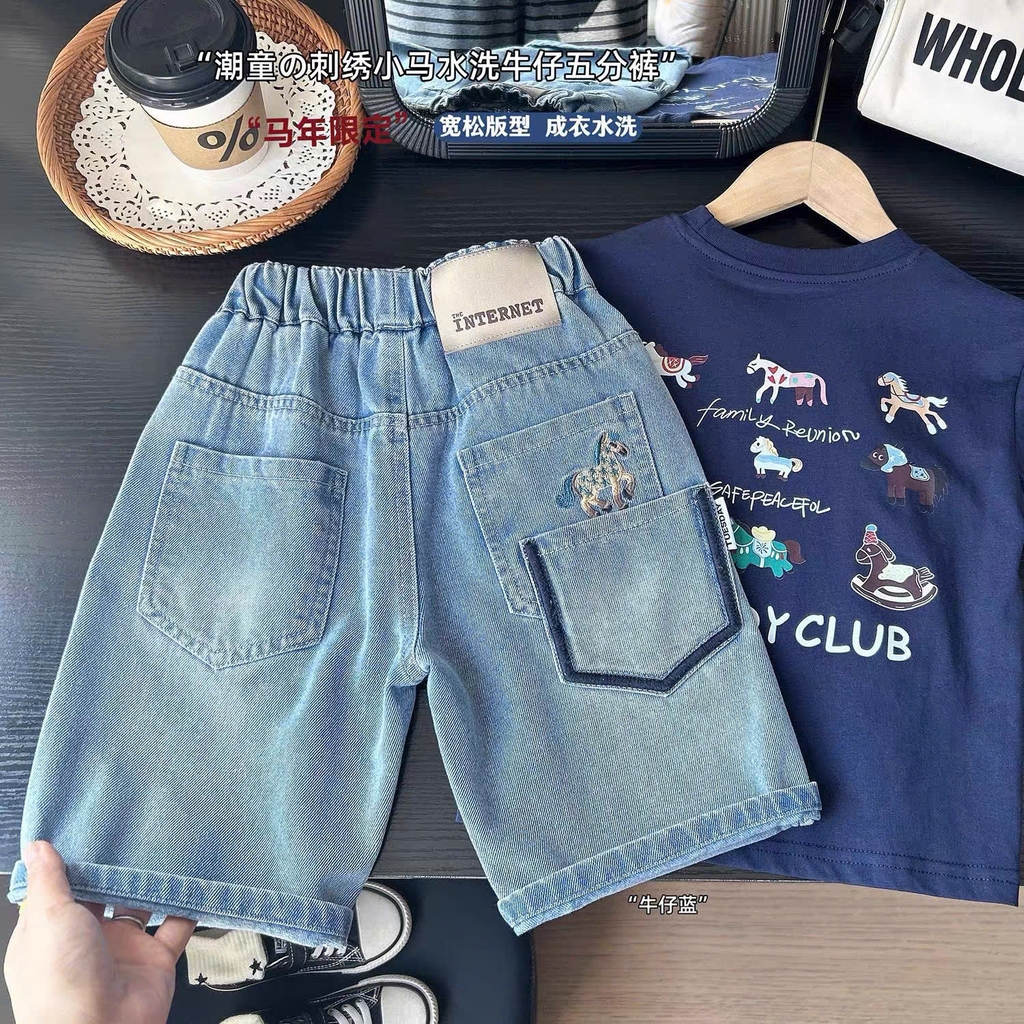 BK - Quần đùi bò thêu hình ngựa (100-150)