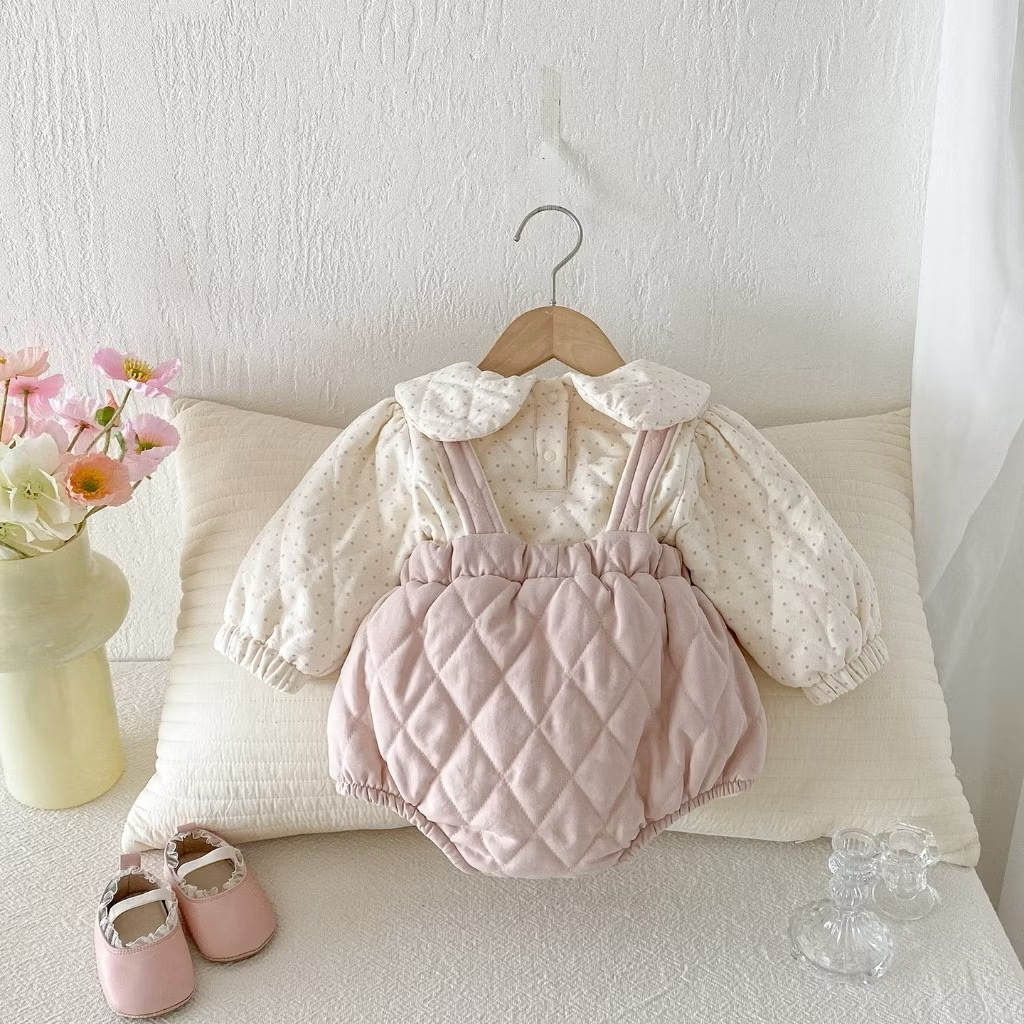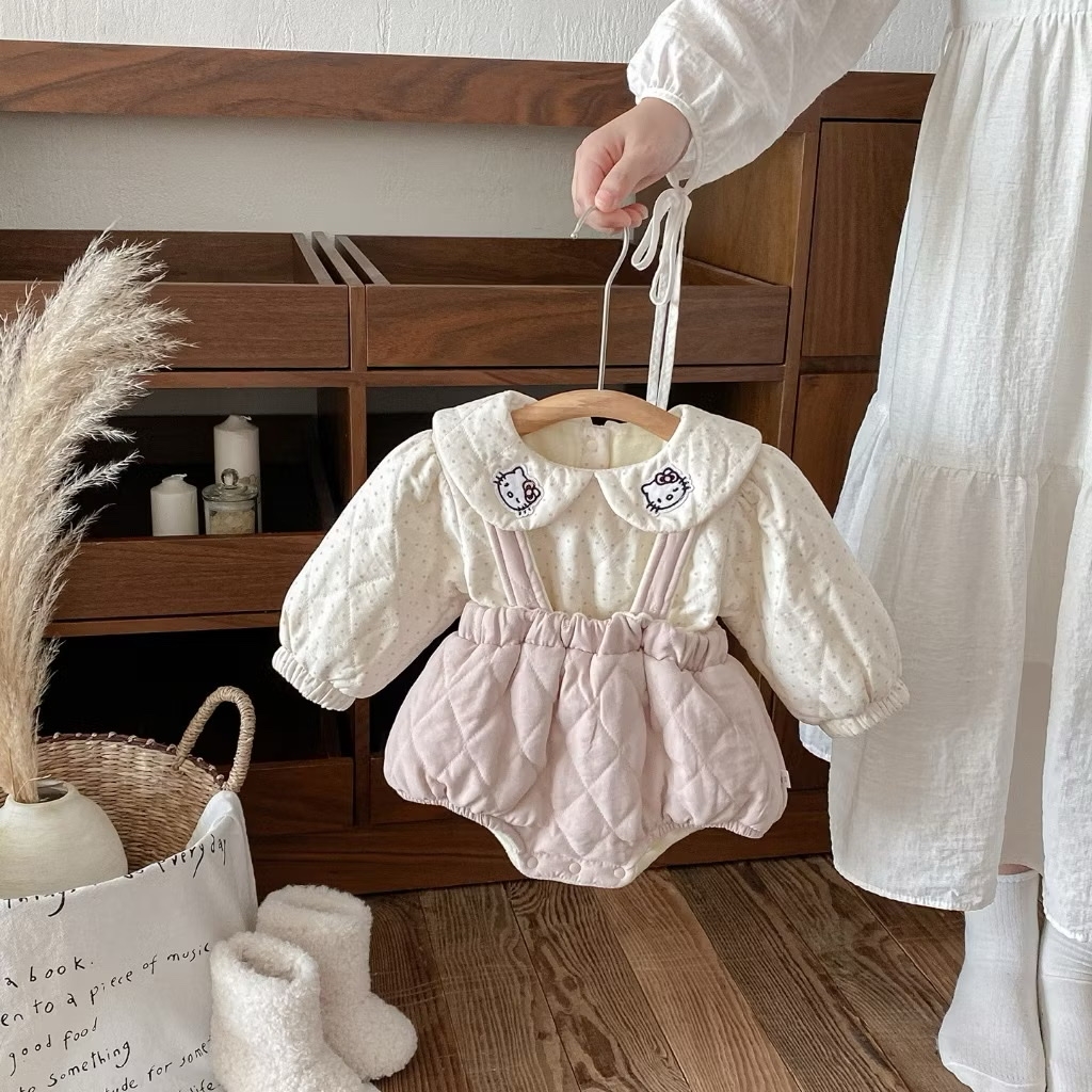 BK - Set yếm + áo chần bông cổ sen mèo(66-90)