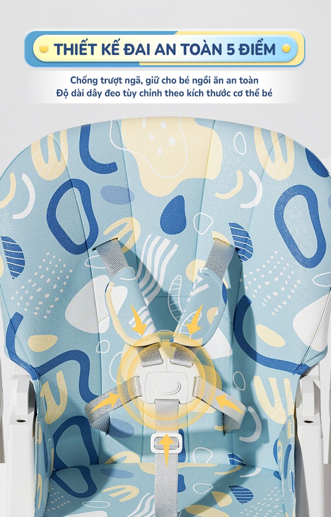 Đai an toàn 5 điểm chống trượt ngã, chiều dài dây đeo tùy chỉnh theo kích thước của bé