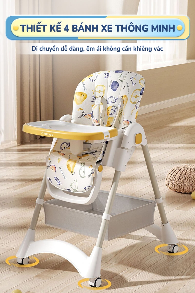 Thiết kế 4 bánh xe di chuyển dễ dàng, êm ái