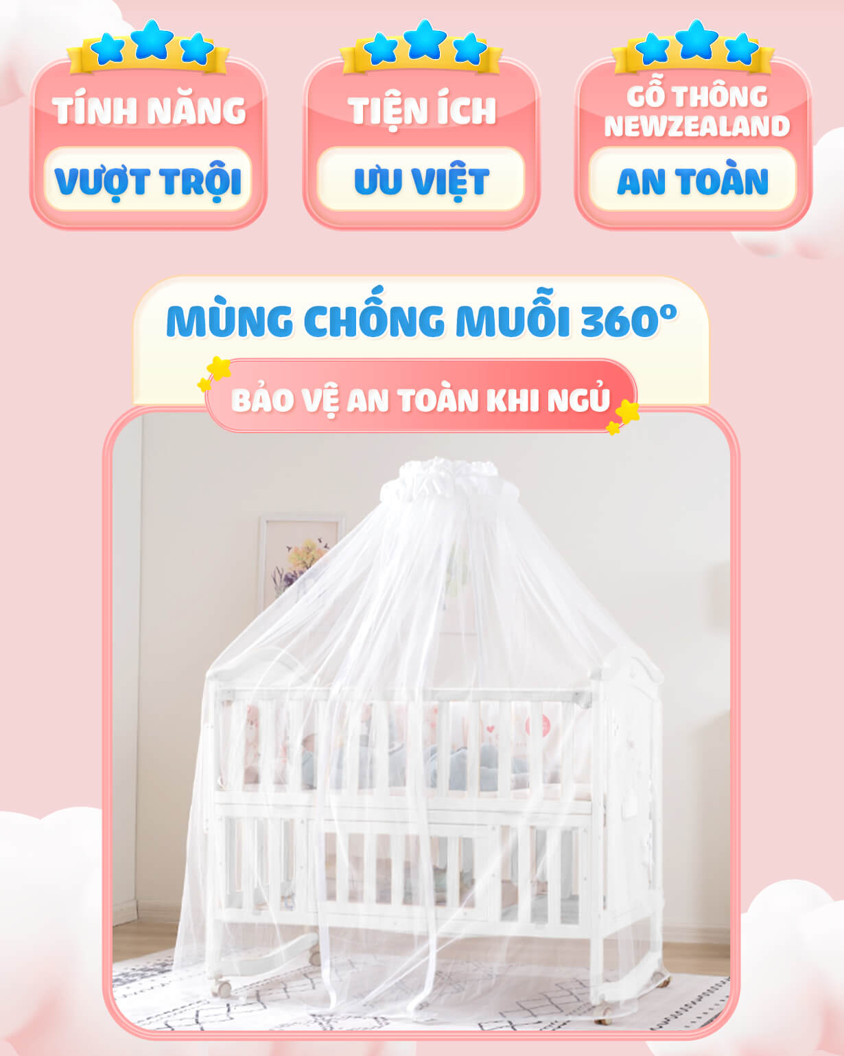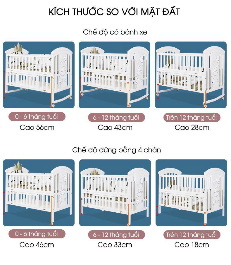 Nôi cũi đa năng Chilux có thể điều chỉnh linh hoạt 6 chế độ tùy theo nhu cầu và độ tuổi của bé, được sản xuất 100% gỗ thông tự nhiên nhập khẩu từ New Zealand , màu gỗ trắng sang trọng mang đến sự an toàn tuyệt đối, đi kèm các phụ kiện để bố/mẹ thuận tiện cho việc chăm sóc bé.