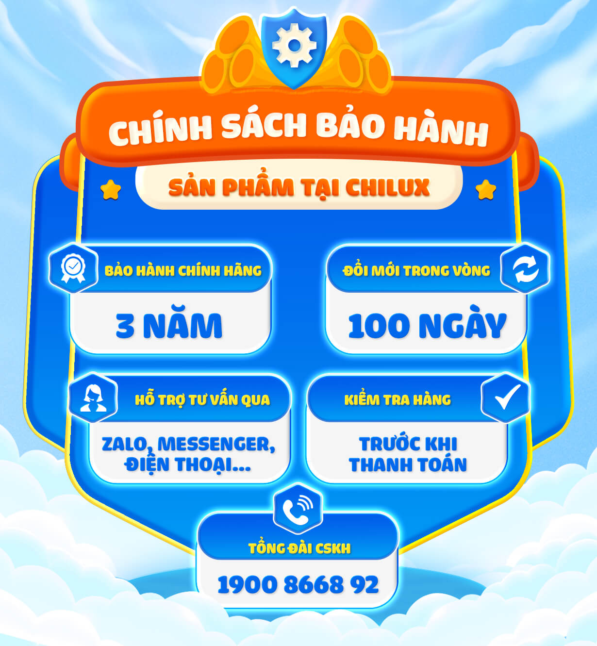 Chilux bảo hành tất cả phần cứng của sản phẩm như: Khung, ốc vít, các chế độ điều chỉnh,….