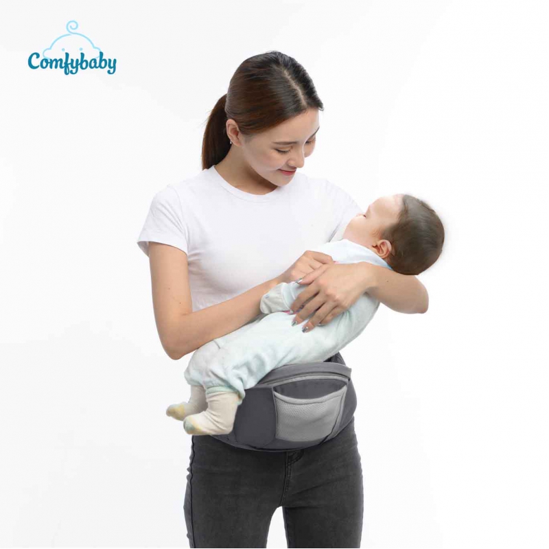 - Hip seat là phần đế ngồi cho bé được đai rất chắc chắn vào phần hông của người địu. Với các loại địu không có hip seat, thì trọng lực chính ở phần bé ngồi sẽ tạo áp lực rất lớn lên phần vai của người địu, khiến bố mẹ rất mệt mỏi và khó chịu, đặc biệt là khi di chuyển thời gian dài. Vấn đề này được giải quyết hiệu quả với thiết kế hip seat của địu Comfybaby 818. Kết cấu phân lực thăng bằng để phân đều áp lực vào toàn bộ các điểm tiếp xúc của địu với cơ thể. Quai đeo với thiết kế chịu lực để bố mẹ luôn cảm thấy thoải mái dù sử dụng liên tục trong một khoảng thời gian dài.