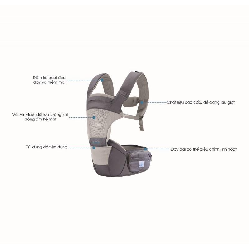 - Túi hông được tích hợp trên sản phẩm để bố mẹ có chỗ để những vật dụng nhỏ vô cùng tiện lợi