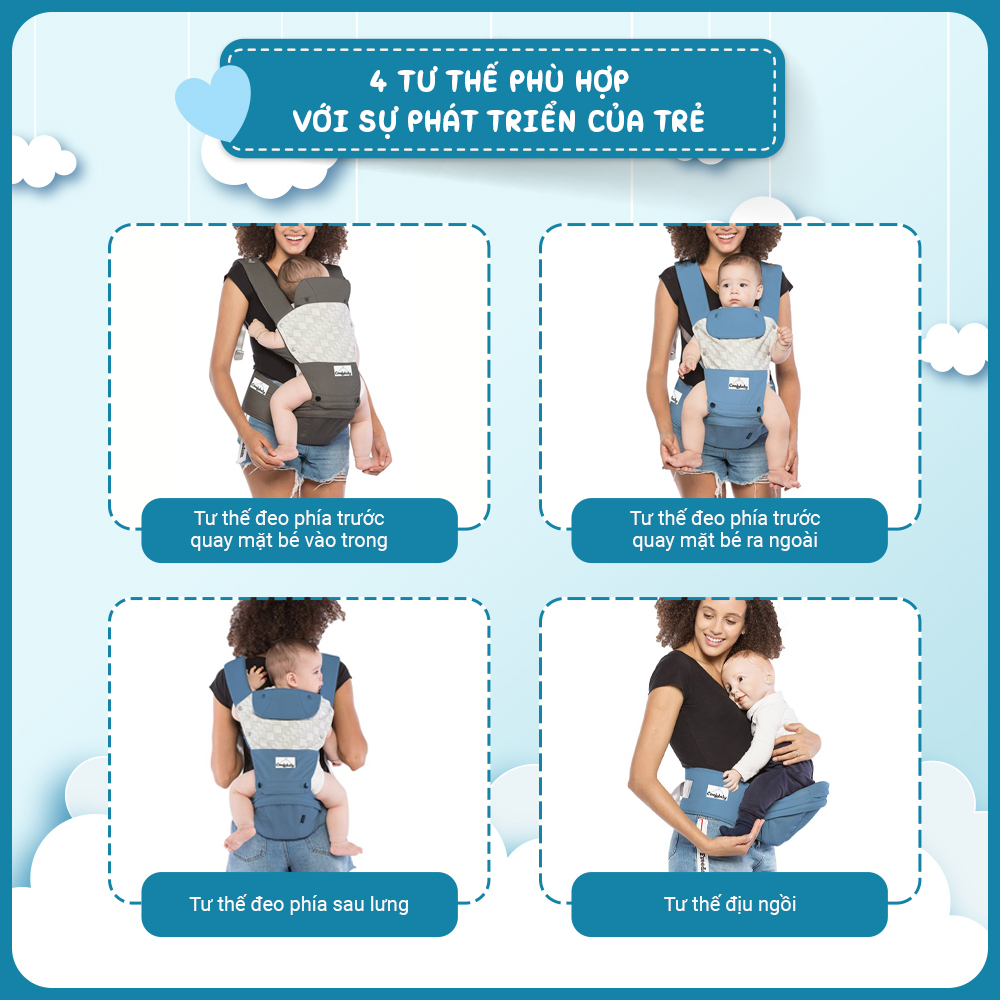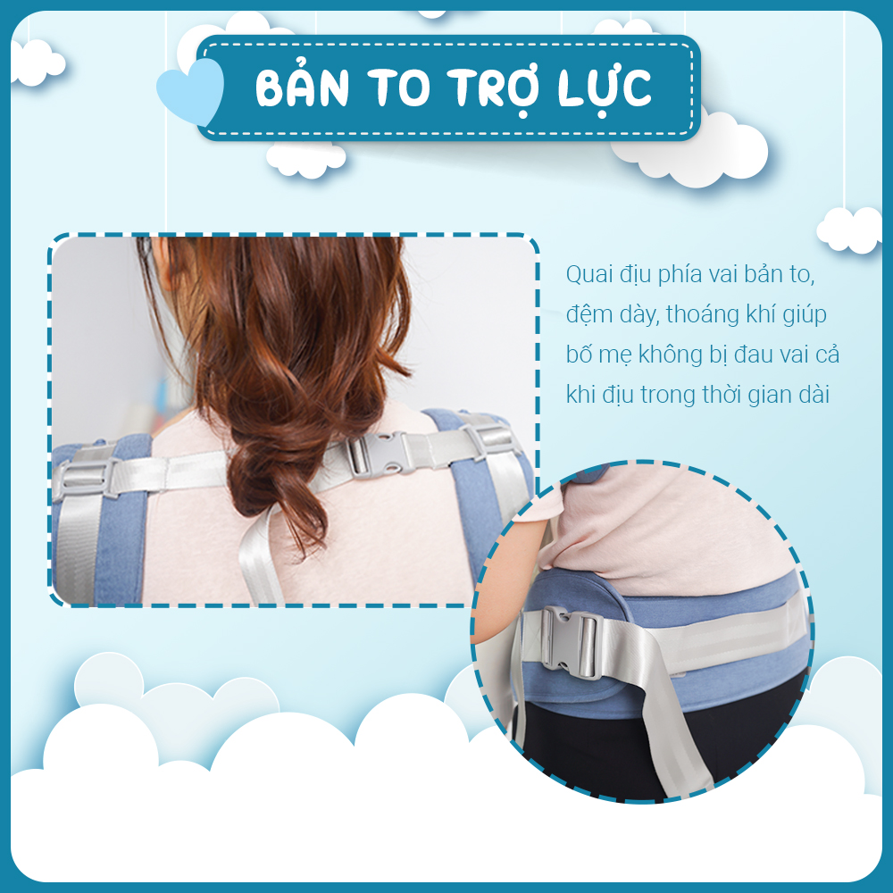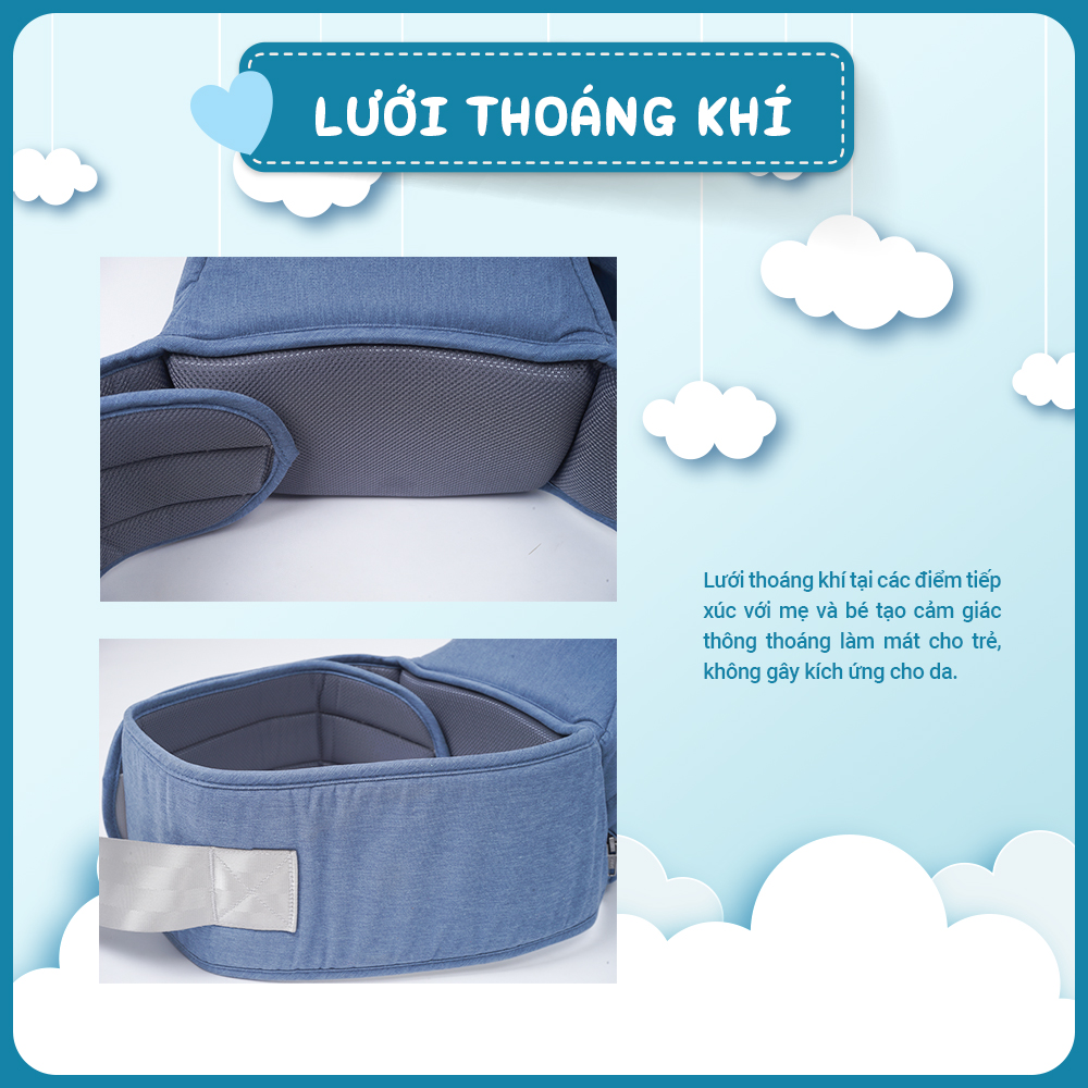 - Lưới thoáng khí tại các điểm tiếp xúc với mẹ và bé tạo cảm giác thông thoáng làm mát cho trẻ, không gây kích ứng cho da.