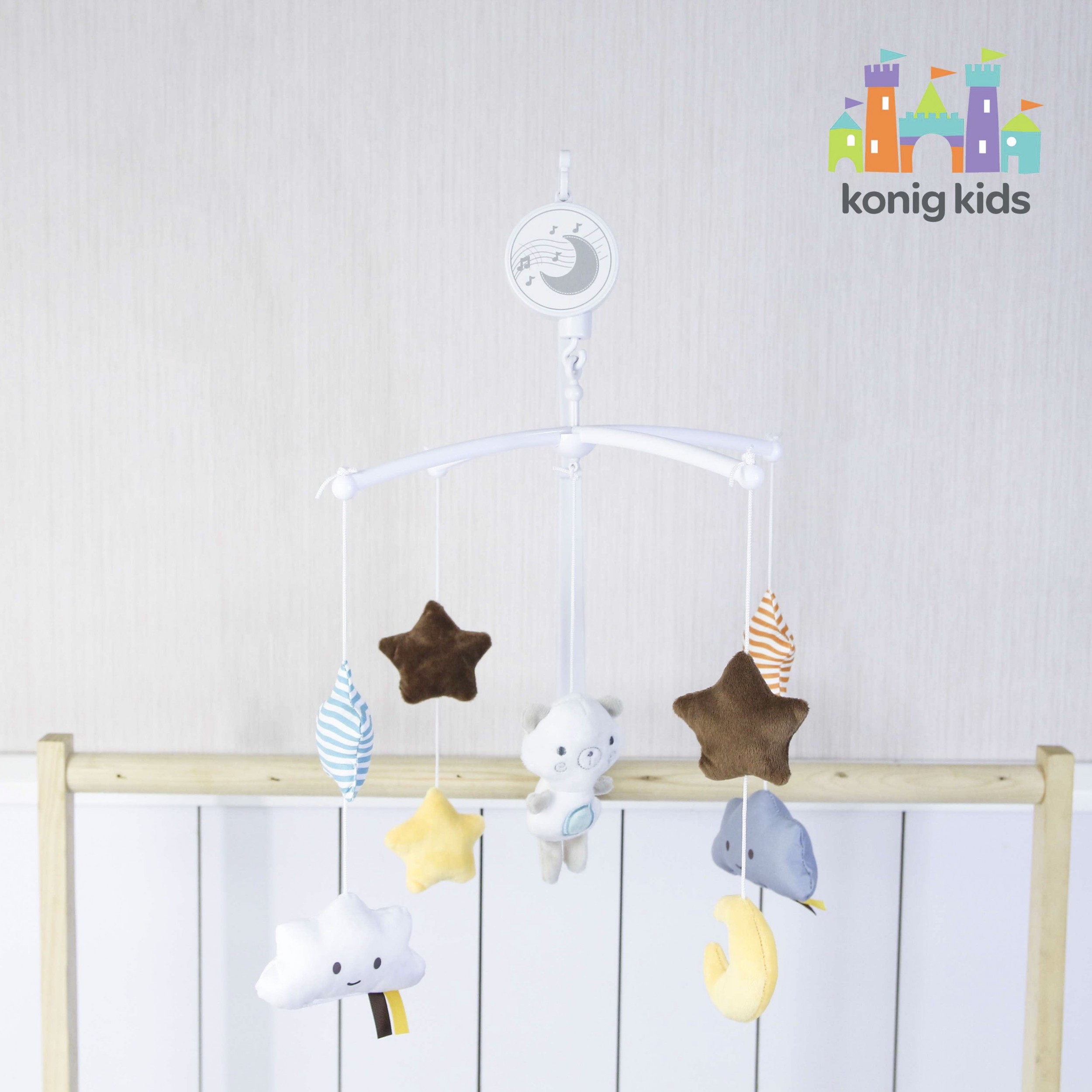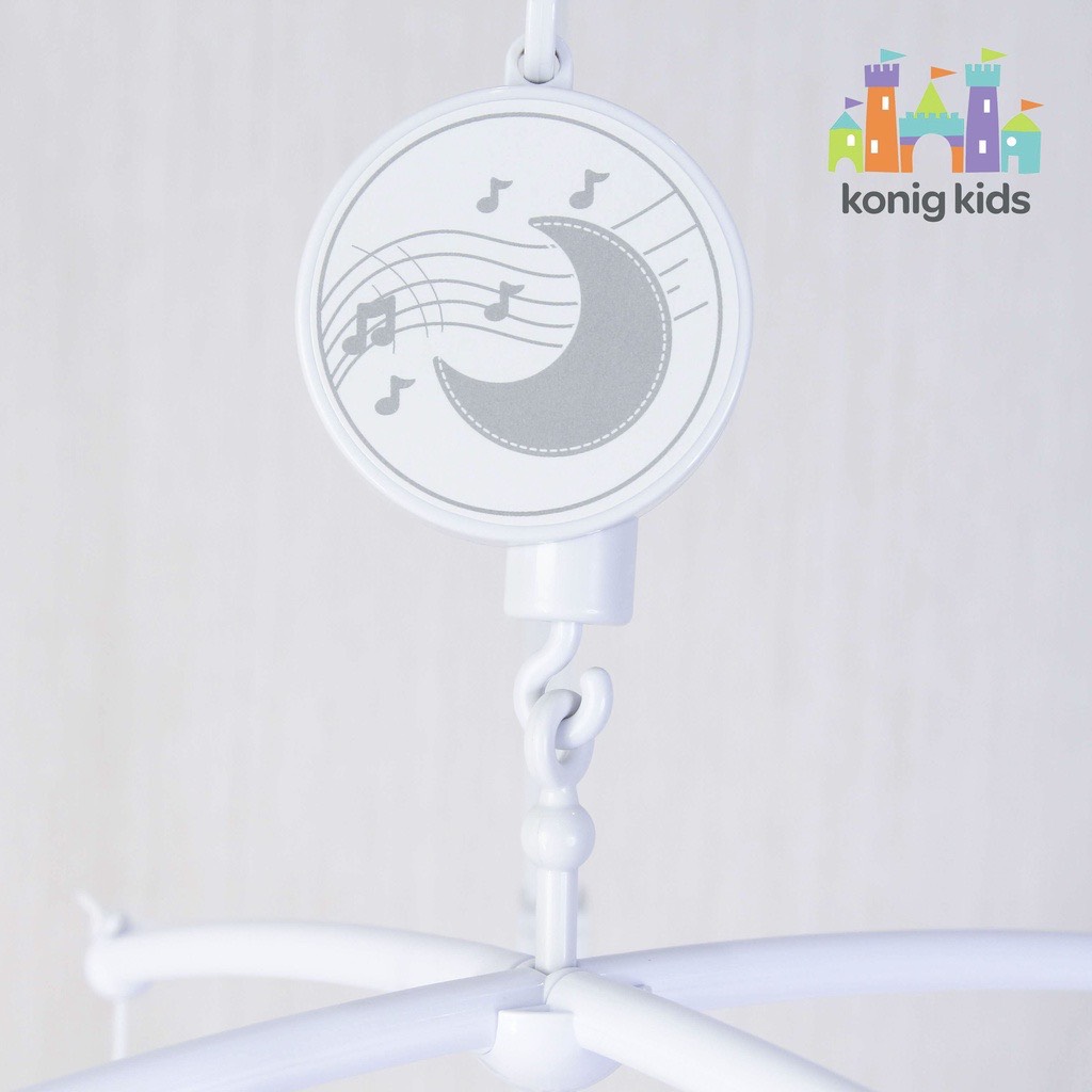 Treo cũi có bộ treo phát nhạc có thể xoay được thông qua việc lên dây cót giúp bé chìm vào giấc ngủ.