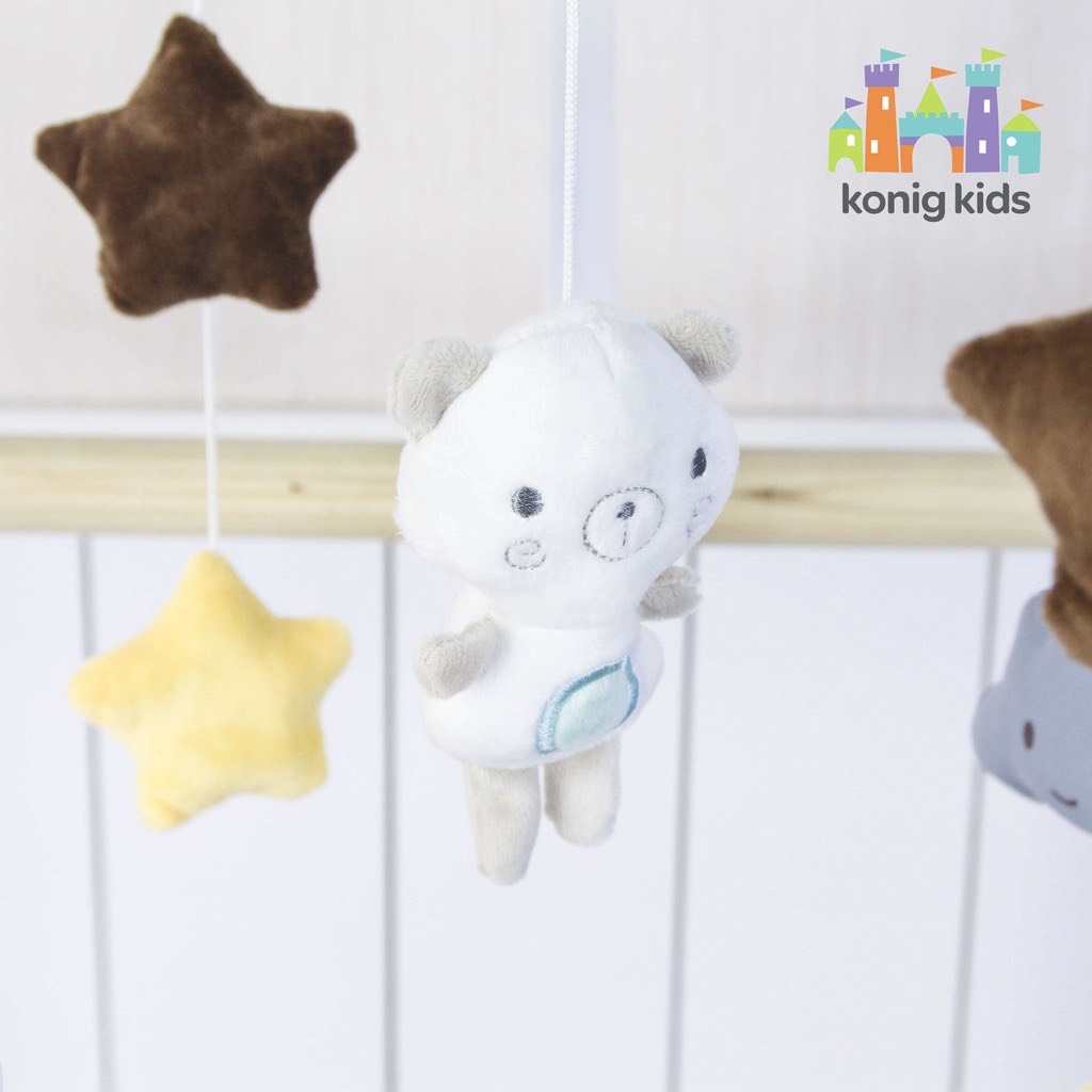 - Bộ sản phẩm bao gồm: bộ cần treo chữ J, bộ xoay phát nhạc, móc treo chữ X, 7 món thú bông kèm theo