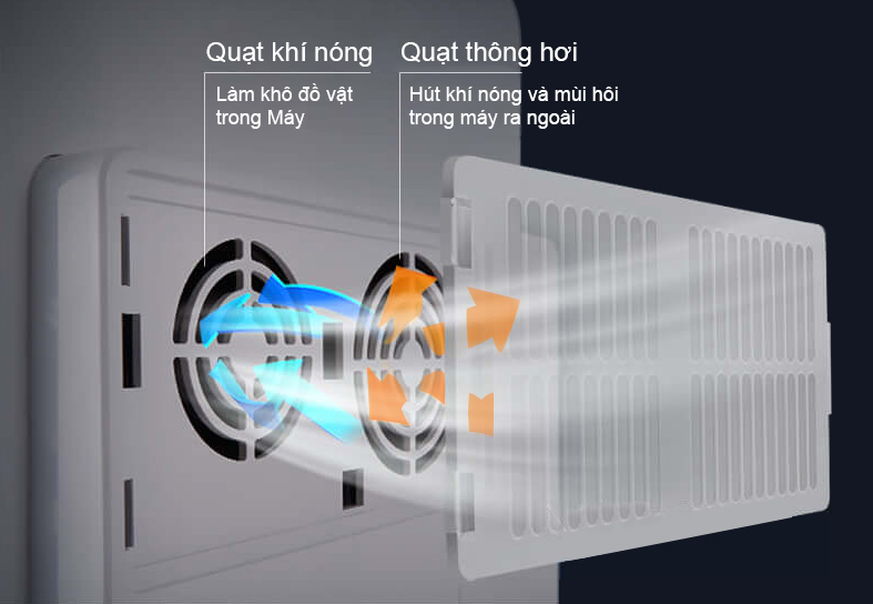 Quạt làm khô sử dụng công nghệ làm nóng PTC giúp làm khô nhanh chóng.