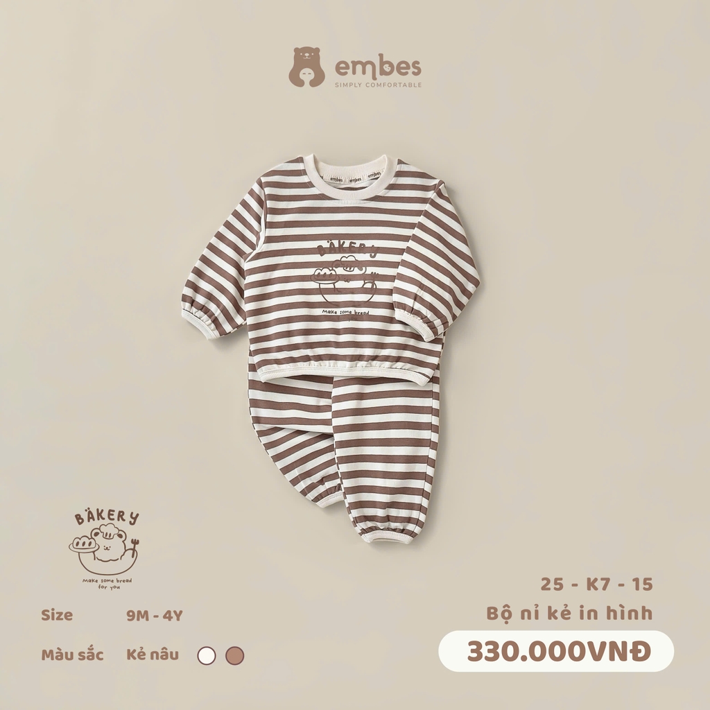 EMBES - Bộ nỉ kẻ in hình(9M-4Y)