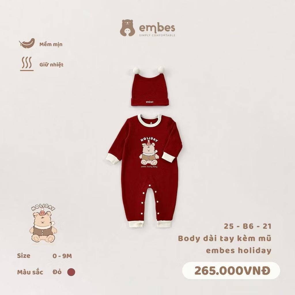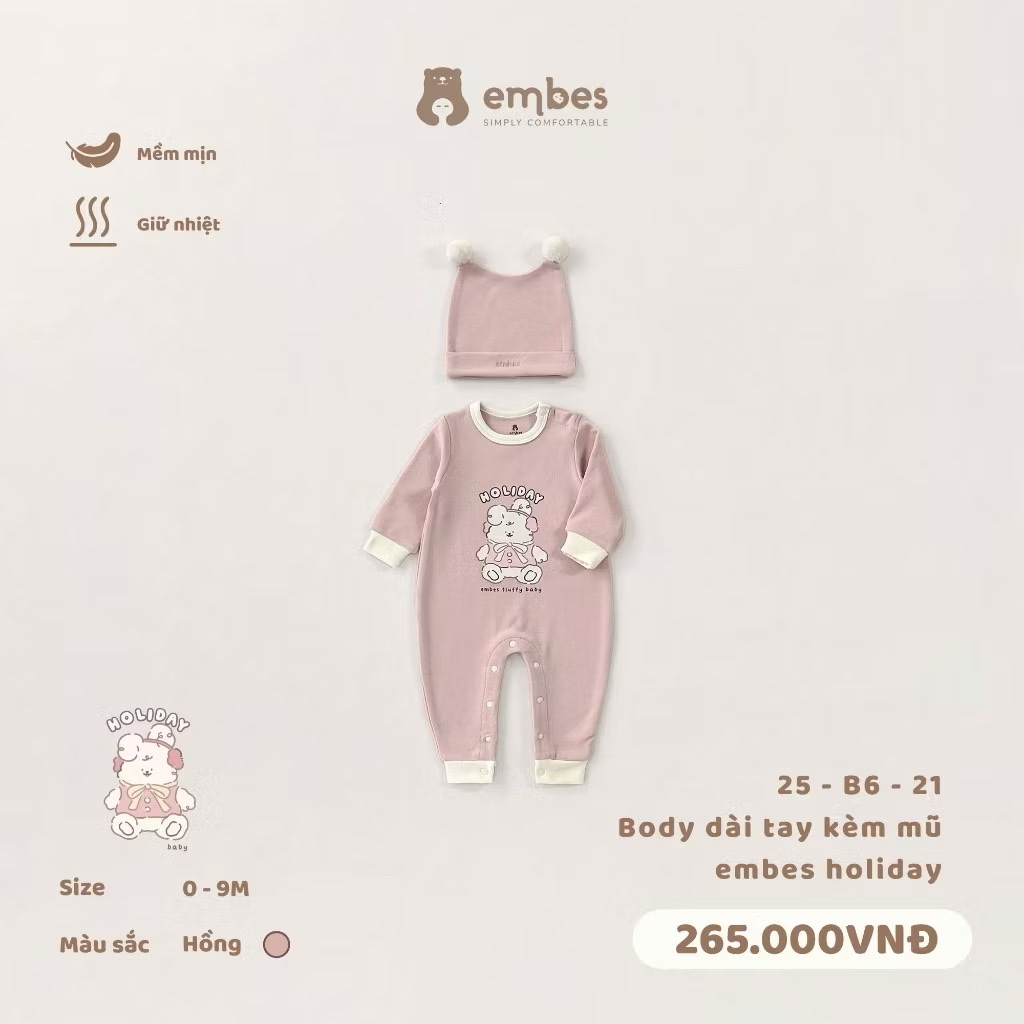 EMBES - Body dài tay kèm mũ Embes Holiday(0-9M)