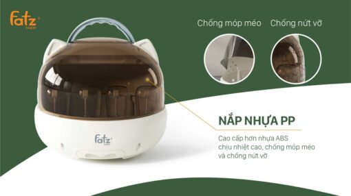 Một trong những vấn đề khiến mẹ đau đầu đó là làm sao để bảo quản bình sữa và các vật dụng ăn uống cho bé được an toàn, vệ sinh? Fatzbaby đưa ra giải pháp thiết thực là Máy úp bình sữa tiệt trùng, sấy khô và bảo quản TIDY 1. Không chỉ là một dụng cụ đựng bình sữa đơn thuần, TIDY 1 tích hợp thêm đèn UVC-LEDs và chức năng sấy khô vật dụng. Ngoài ra mỗi 2 giờ máy sẽ tự động chiếu tia UV 2 phút trong suốt 72 giờ, cực kỳ lý tưởng để bảo quản các vật dụng cho bé, tránh khỏi các vi khuẩn sinh sôi trong điều kiện tự nhiên. TIDY 1 cấu tạo bởi vật liệu chịu nhiệt cao cấp, nắp đậy PP an toàn, không biến dạng. không nứt vỡ, giúp mẹ an tâm hơn khi sử dụng