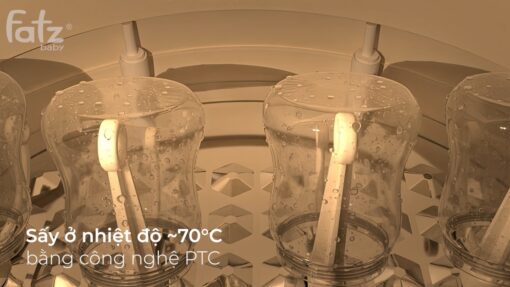 Sấy vật dụng bằng công nghệ PTC và có quạt thông gió, giúp làm nguội nhanh chóng, tránh bỏng tay.