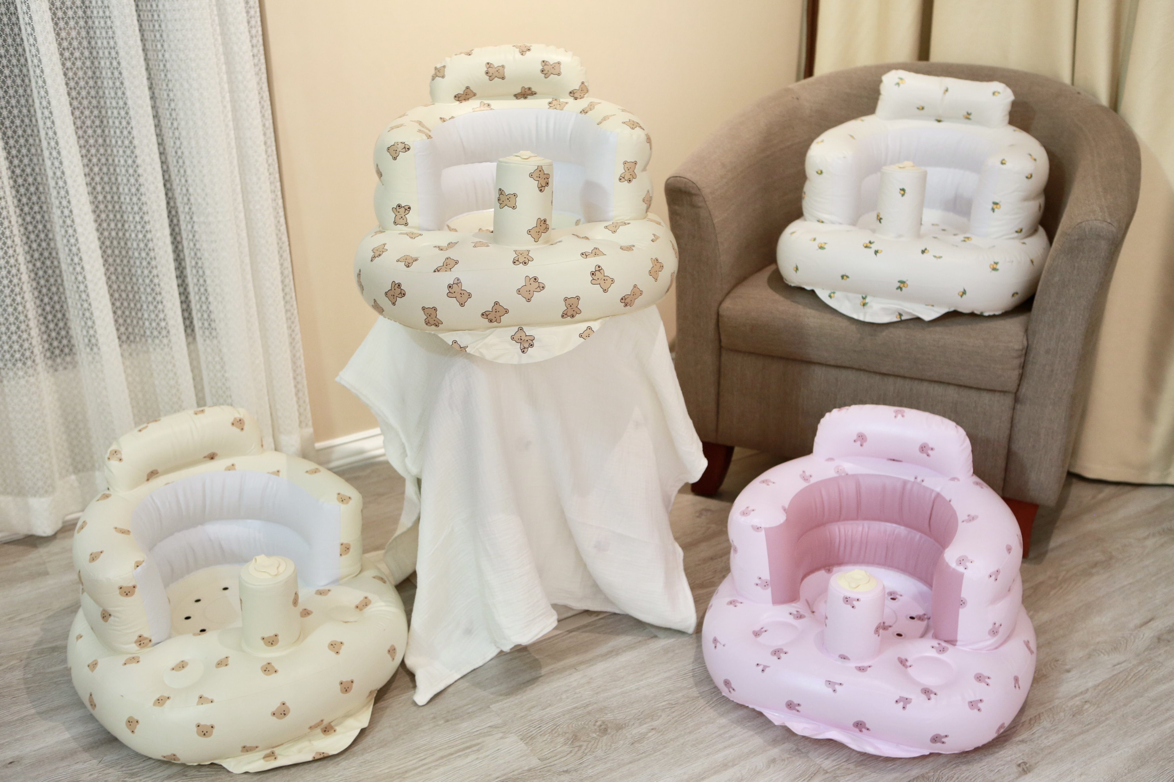 Ghế hơi cho bé tập ngồi, tập ăn dặm Playing chống ngã - Phong cách Hàn Quốc | Ghế bơm hơi tự động cho bé