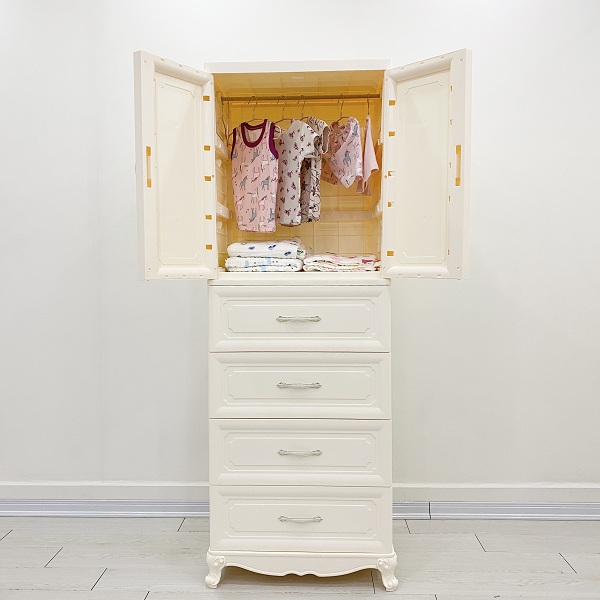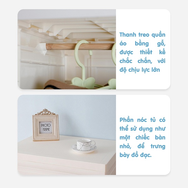 Nhiều ngăn tủ chia nhỏ cho không gian đựng đồ tiện dụng hơn, 1 ngăn tủ to treo quần áo cho bé