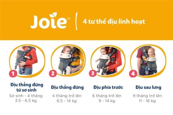 Địu thẳng đứng thích hợp sử dụng cho bé từ 4 tháng trở lên (6,5 - 14kg).