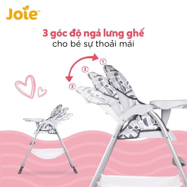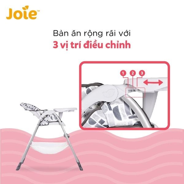 Bàn ăn rộng rãi với 3 vị trí điều chỉnh. Dễ dàng kéo gần vào bé hoặc tháo ra dễ dàng.