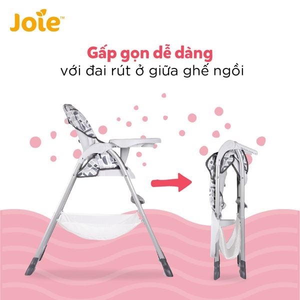 Với thiết kế thông minh, ghế ăn trẻ em Mimzy Snacker có thể gấp dễ dàng với đai rút ở giữa ghế ngồi.