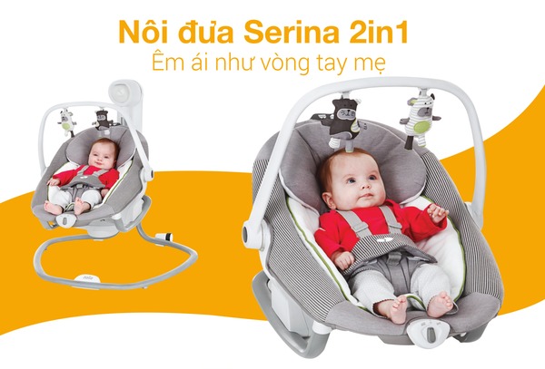 Nôi đưa Serina 2in1 vừa làm nôi đưa vừa có thể tách riêng làm nôi đưa di động, thích hợp sử dụng cho bé từ sơ sinh đến 9kg, mang đến cho bé giấc ngủ ngon như trong vòng tay mẹ.
