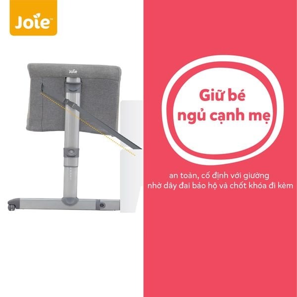 Nôi ngủ cạnh giường Joie Roomie giữ bé ngủ cạnh mẹ an toàn theo nguyên tắc “chung phòng nhưng không chung giường”.