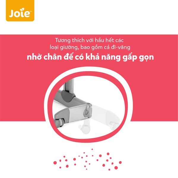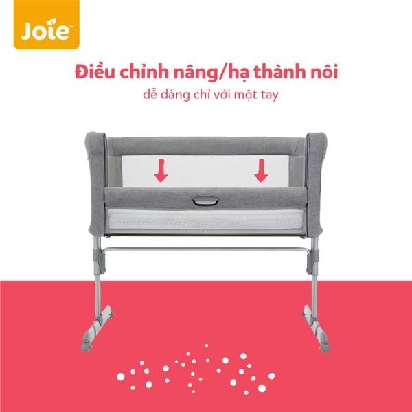 Nôi ngủ cạnh giường Joie Roomie được thiết kế với khung nôi có độ an toàn cao, chịu lực tốt, có thể dùng cho bé đến 9kg. Ba mẹ có thể điều chỉnh nâng hoặc hạ thành nôi dễ dàng chỉ với một tay, giúp mẹ dễ dàng quan sát và chăm sóc bé ngay bên cạnh giường của mình.