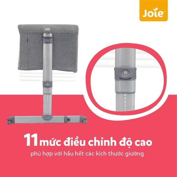 Được thiết kế với 11 mức điều chỉnh độ cao, nôi ngủ cạnh giường Joie Roomie phù hợp với hầu hết các kích thước giường nên ba mẹ không cần phải lo lắng về vấn đề mua nôi về nhưng lại quá cao hoặc quá thấp so với giường nhà mình.