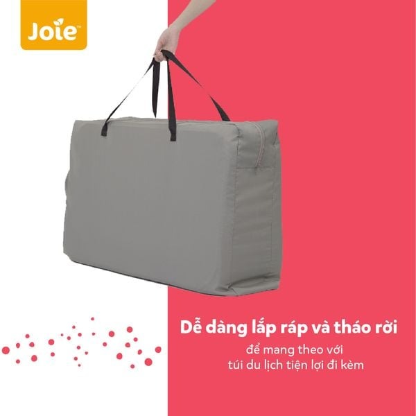 Thật dễ dàng để mang theo bộ nôi ngủ cạnh giường Joie Roomie vì khả năng lắp ráp và tháo rời với túi du lịch tiện lợi đi kèm.