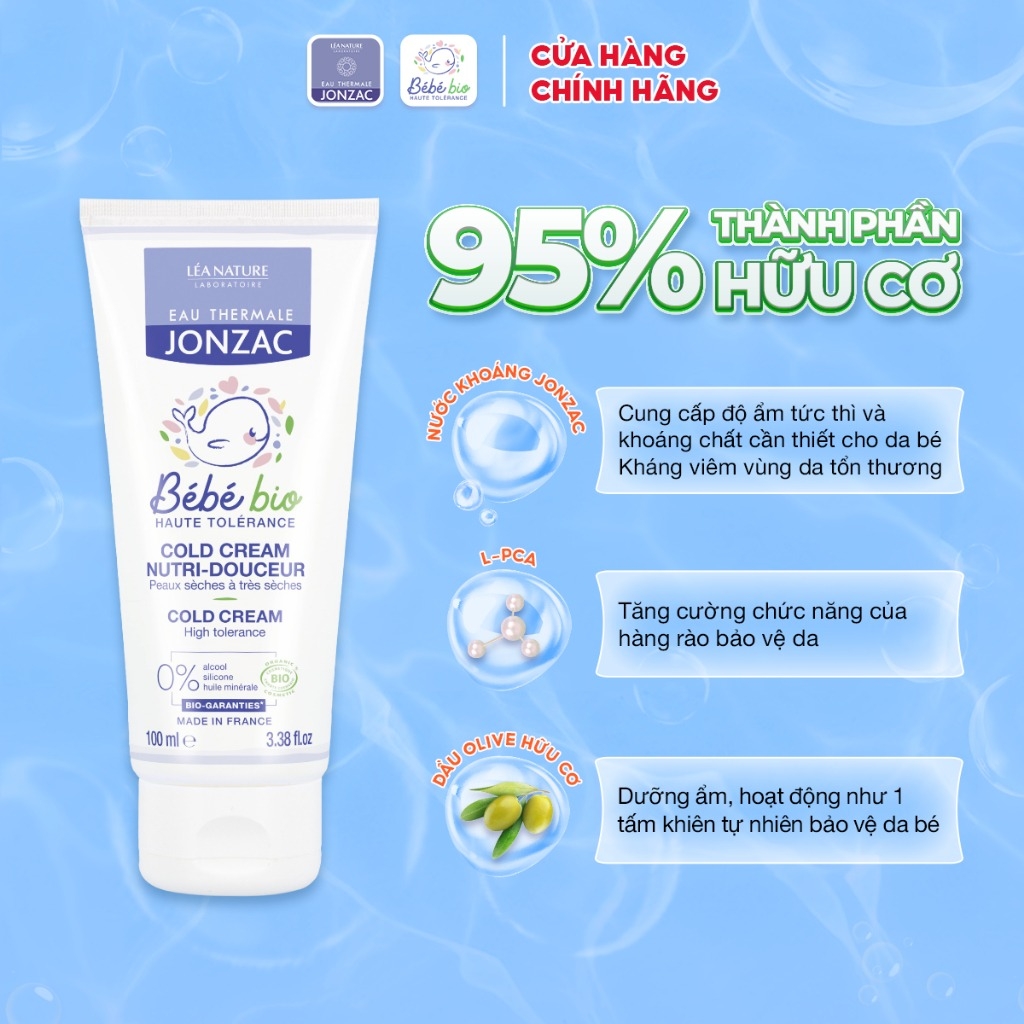 Được sản xuất dựa trên công nghệ tiên tiến và 95% thành phần có nguồn gốc hữu cơ, sản phẩm đảm bảo cung cấp độ ẩm trong suốt 24h, giúp da luôn mềm mại, mịn màng và khỏe mạnh. Nước khoáng nhiệt Jonzac - thành phần chính của kem dưỡng, được biết đến với khả năng làm dịu và tái tạo làn da, giúp da bé chống lại các kích ứng và tăng cường khả năng phục hồi tự nhiên của da.