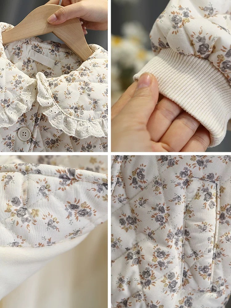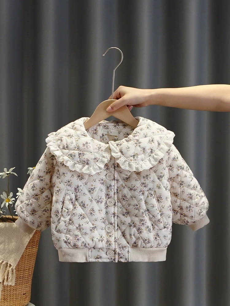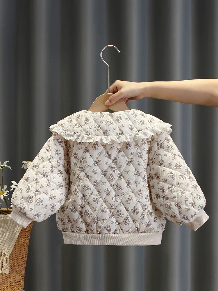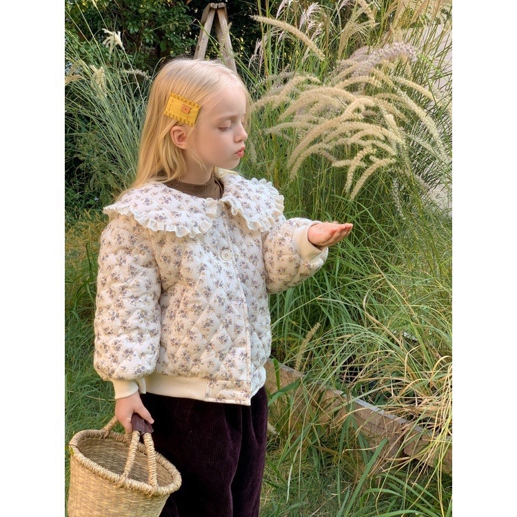 JS áo phao hoa nhí nâu cổ sen(90-120)