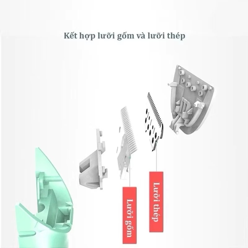 ➖ Bộ sản phẩm đi kèm: 01 thân máy, 03 gá lược (răng 3/6mm, răng 9/12mm, răng chéo), 01 áo che, 01 chổi, 01 dây sạc USB, 01 hướng dẫn sử dụng.