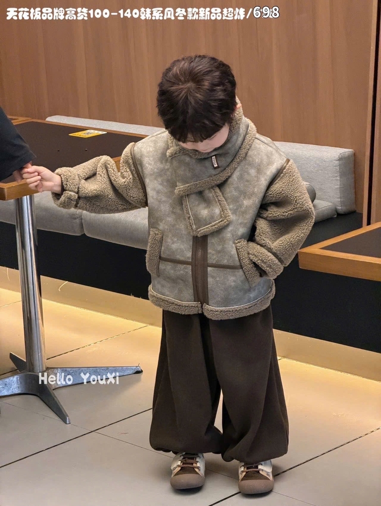 LB - Áo khoác da lộn viền lông kèm khăn nâu(7-15)