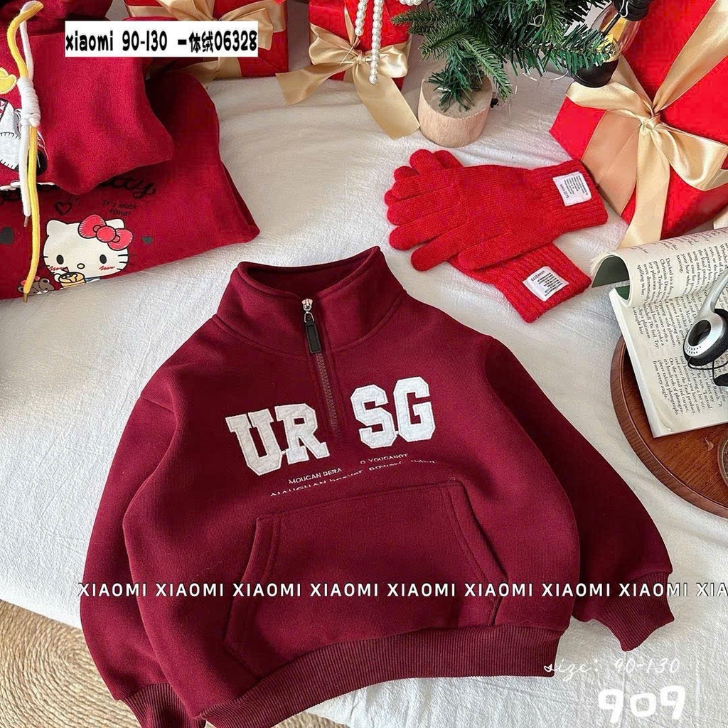 LB - Áo nỉ đỏ URSG cổ khoá lót nỉ (90-130)