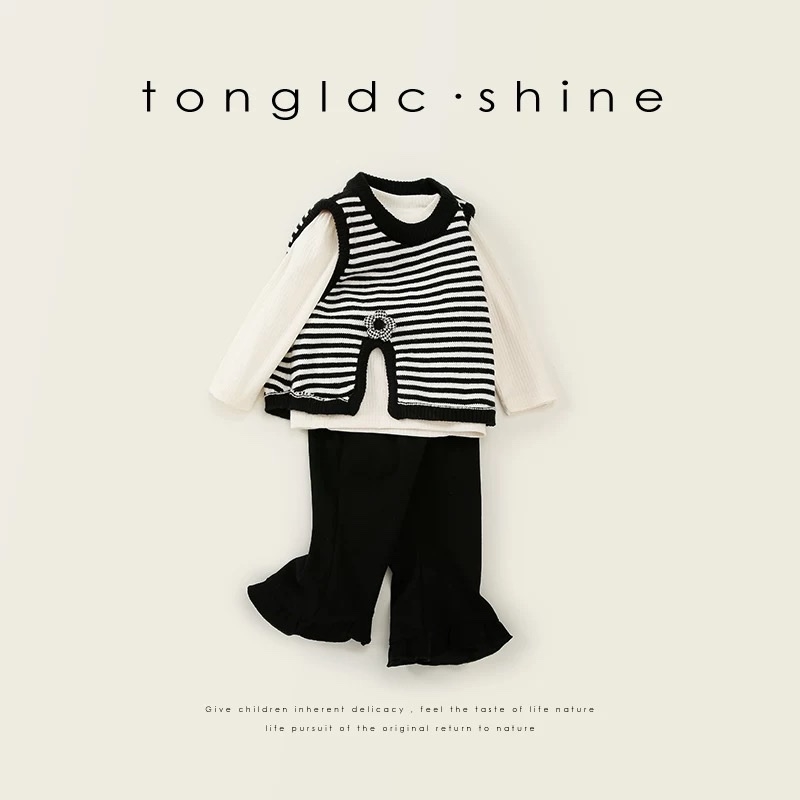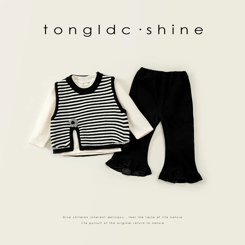 LB - Set 3 chi tiết gile len kẻ quần loe(90-130)