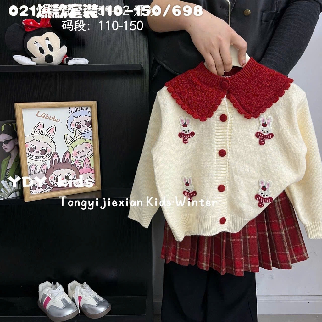 LB - Set áolen kem in thỏ + CV dạ kẻ đỏ(110-150)