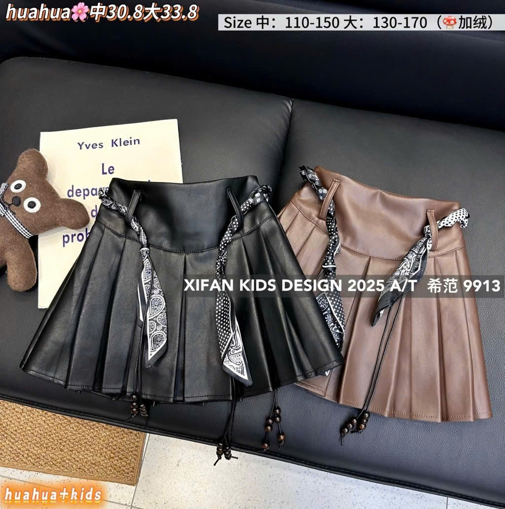 LB - Chân váy da xếp ly trơn kèm khăn(100-135)