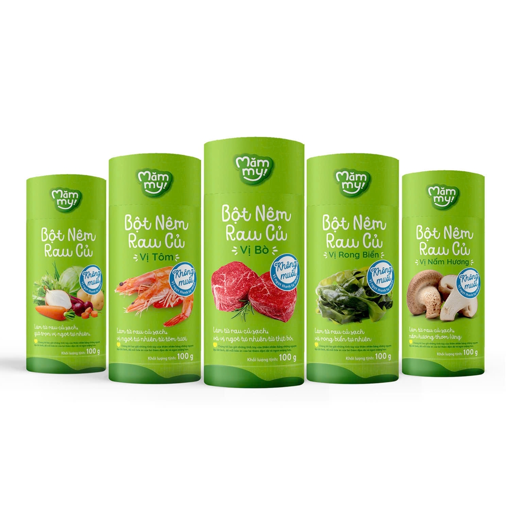 Bột nêm rau củ Mămmy được chế biến từ các loại rau củ tươi ngon, phù hợp với hệ tiêu hóa còn non nớt của bé. Sản phẩm không chứa muối và bột ngọt, giúp mẹ yên tâm nêm nếm cho các món ăn dặm của bé.