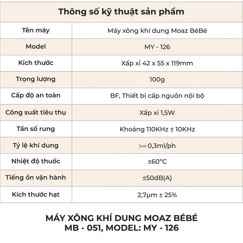 Thông tin máy xông khí dung Moaz BéBé MB- 051