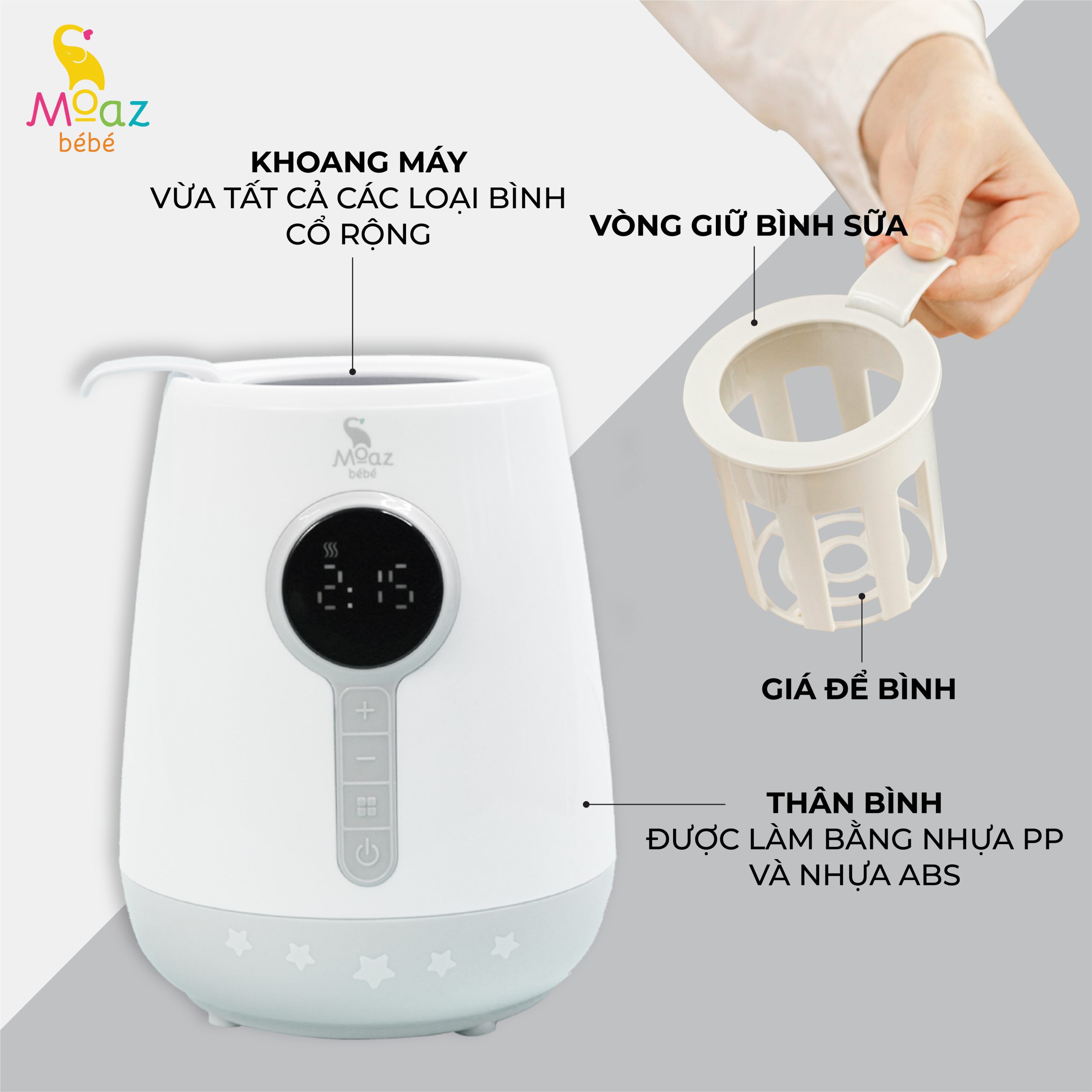 – Máy hâm sữa siêu tốc MB-021 Moaz Bébé có khoang hâm rộng, sử dụng được cho tất cả các loại bình sữa.